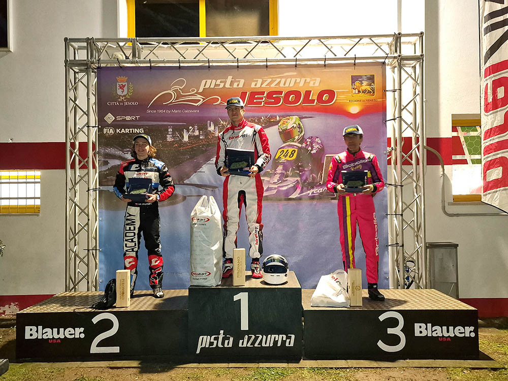 La prima volta non si scorda mai. Potrebbe essere questa l’estrema sintesi del weekend jesolano di Galimberti: dopo aver gareggiato nelle posizioni di vertice in tutte le sessioni ufficiali, Edoardo è riuscito a strappare la vittoria in Finale per appena 190 millesimi. Al secondo posto Tommaso D’Ambrosio, autore della vittoria in Sprint Race e della pole in qualifica, terzo a 247 millesimi Alex Puligheddu, quarto a 0”595 Alessandro Cereda, quinto Marco Pozzoni. Giro più veloce per Greta Galliani.