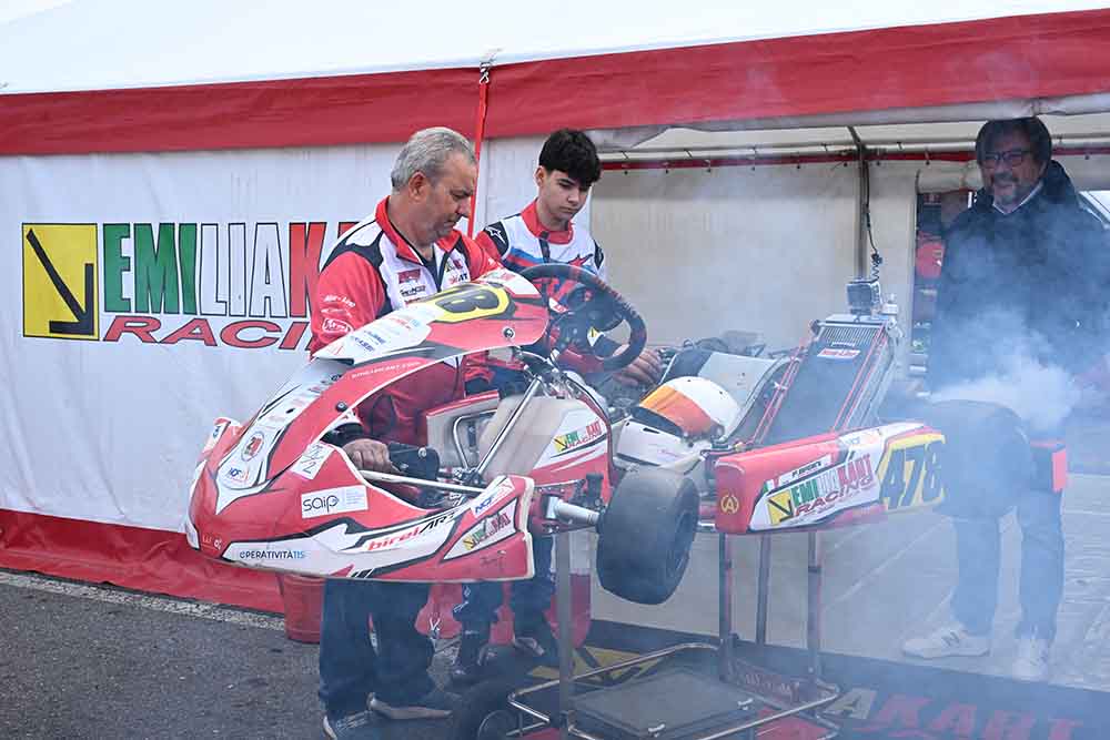 An extremely intense Final in Easykart 60 saw the top three covered by less than half a second after nine laps. Francesco De Luise came out on top with a determined and decisive performance.