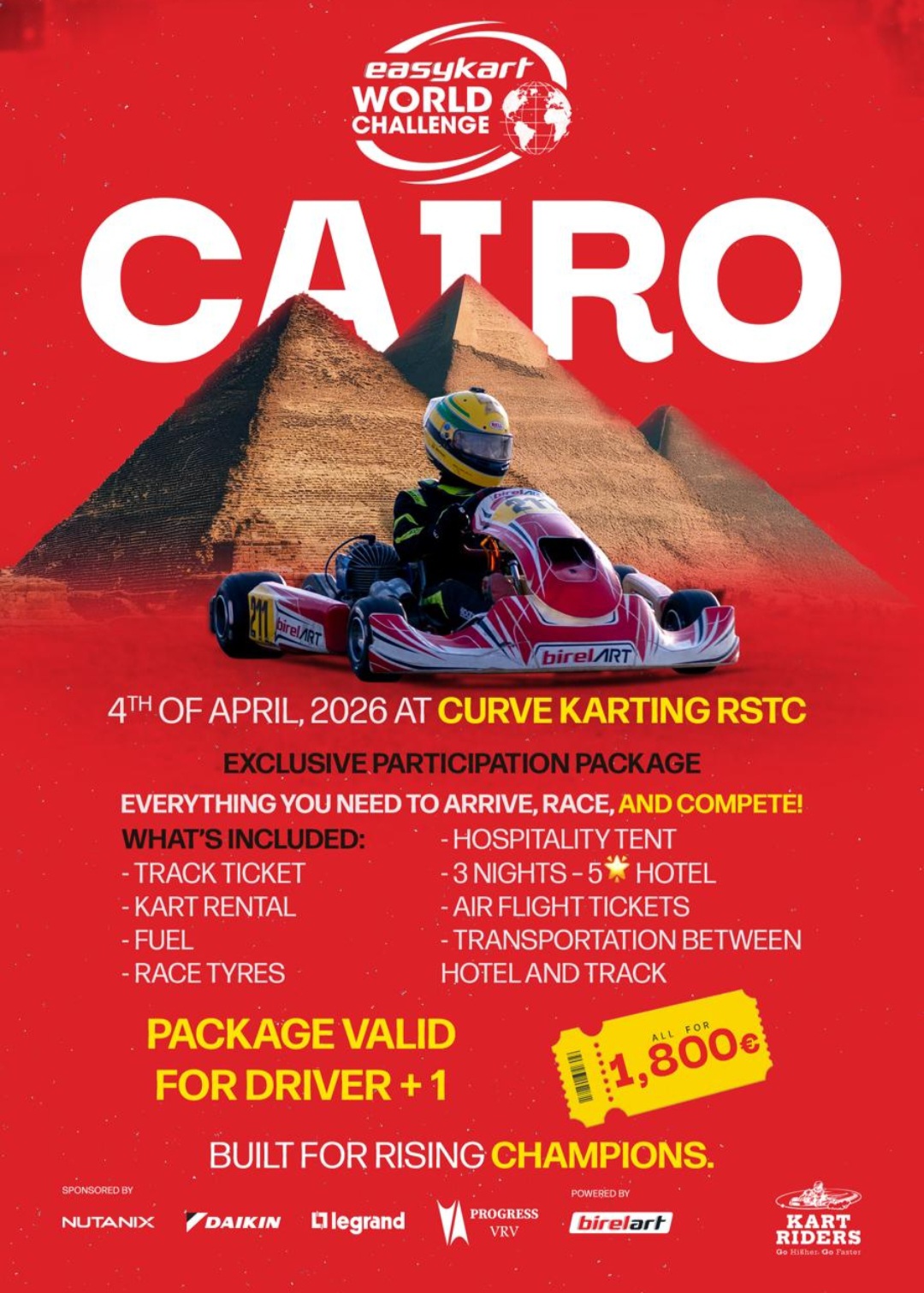 The first event will take place at Curve Karting RSTC in Cairo, with departure by plane on April 2 and return on April 5. The second event will instead be held at Curve Karting Arish, with departure by plane on July 2 and return on July 5.
